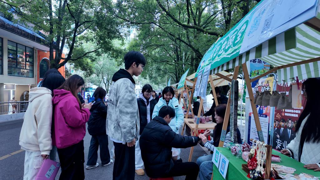 本次集市汇聚了多个创意项目,划分出青年养生区、手作体验区、文化创意区等主题板块,为师生带来丰富多元的创新体验,也搭建起交流灵感、激发想象的合作平台。