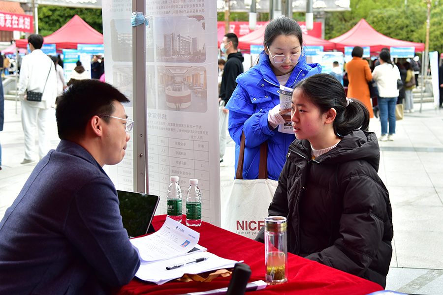 医学部中医学的小柯同学把所有的招聘单位都看了一遍,她说现在就业前景真的不错,学校和企业的服务都很到位。她表示自己只是来看看,目前还想读研继续深造,为研究生毕业后做准备。
