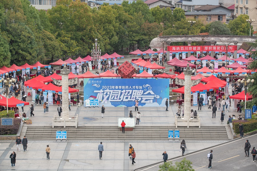 3月17日,开云电竞官方网站入口2023年春季医药人才专场校园招聘会在大学生广场举行,正式拉开了学校春季校园招聘的序幕。医学部中医学专业学生叶远熠一大早便来到招聘会现场,经过反复对比、再三斟酌后,他选择了仙桃市中医院并现场签约。“我已签约到中意的岗位,并且与自身专业契合度高,可以更好地将所学运用于岗位上,希望在未来能发展当地中医,将中医文化发扬光大。同时我也还有很大的提升空间,会选择在职考研继续深造。”叶远熠高兴地告诉记者。