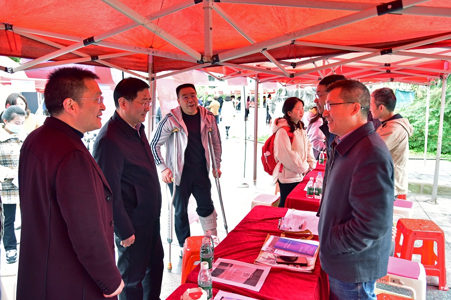 党委副书记邓磊(前排左二)与招聘单位负责人交谈