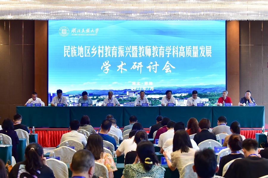 7月14日至16日,由湖北民族大学教师教育学院主办的“民族地区乡村教育振兴暨教师教育学科高质量发展”学术研讨会在恩施召开。湖北民族大学校长顿祖义教授出席开幕式并讲话,来自全国各地高校的专家学者、地方基础教育一线骨干教师、教研机构研究人员等120多人参加会议。