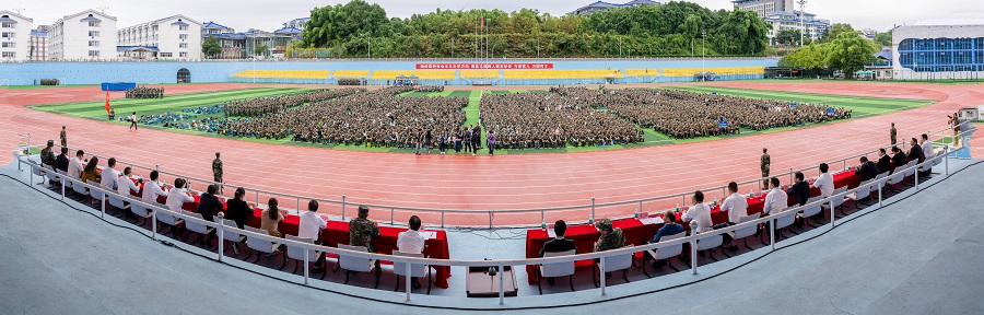 9月24日,湖北民族大学2023级本科生军训会操暨总结表彰大会在学校五环体育场隆重举行。学校党委书记向前进出席大会并为武警恩施支队授锦旗。军训团政委、学校党委副书记邓磊,党委常委、副校长李军,中国人民武装警察部队恩施支队支队长宋强,政治委员吴保民等领导出席大会,军训领导小组成员,各学院(部)党委、党总支书记,全体承训教官和参训学生参加表彰大会。