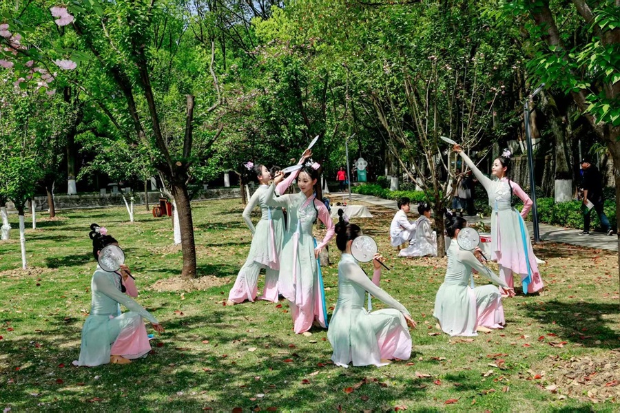 连日来,湖北民族大学师生被一场深度嵌入“一环三点”校园景观的实景歌舞大秀深深吸引。4月10日,湖北民族大学校园繁花似锦,人头攒动,一堂生动精彩、内涵丰富的茶廉文化思政体验课《典籍里的恩施茶》正式上演。校领导余来、张宏磊、田景福与学校各单位党政主要负责人一起观看了演出。恩施州委宣传部副部长、州社科联主席李娟,恩施州政协、州农业农村局、州文旅局、州文化馆等单位相关负责人受邀参加活动。