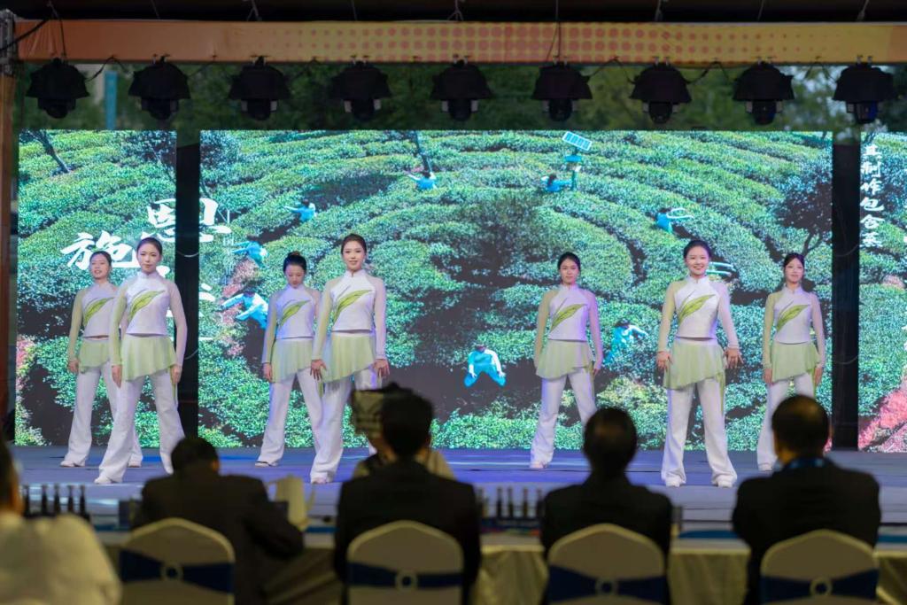 伴随着原创民俗乐曲,体育学院表演团队以流畅的动作再现恩施玉露摊青、杀青、揉捻等制茶环节的神韵,一举一动尽显茶艺与健身的融合之美。动作刚柔并济、节奏分明,既保留了传统技艺的文化精髓,又赋予其现代健身的活力。观众在视觉与文化的双重体验中深刻感受到恩施玉露独特魅力,现场掌声不断,将茶文化推广推向新高潮。