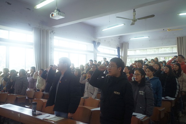 活动伊始,组织党员交纳党费,重温入党誓词。随后,与会党员诵读《党章》第四章第二十八、二十九、第五章第三十条内容。接着,覃昕领学“习近平在全国脱贫攻坚表彰大会上的讲话”;刘恒组织学习“关于印发《2021年学校工作要点》的通知”,他谈到全体成员应提升自身的政治意识,树立正确的政治站位。 接着,彭召元领学“中央全面深化改革委员会第十七次会议精神”,其中,他对中央全面深化改革委员会的来历进行解释。随后,张艺馨领学“1月7日中共中央政治局常务委员会会议精神”。最后,学生党员钟芳芳带领全体成员共同学习“习近平总书记关于铸牢中华民族共同体意识的重要论述摘要”。