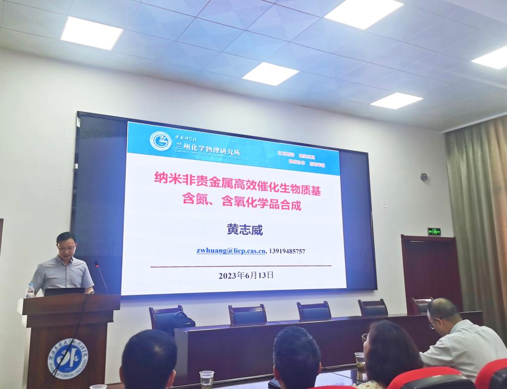 6月13日上午9点,我校化学专业杰出校友、中国科学院兰州化学物理研究所特聘骨干研究员黄志威博士受邀来到我校,围绕“纳米非贵金属高效催化生物质基含氮、含氧化学品合成”主题做学术报告。报告由化学与环境工程学院院长李国祥教授主持,学院部分老师、研究生及本科生共约100人听取了报告。