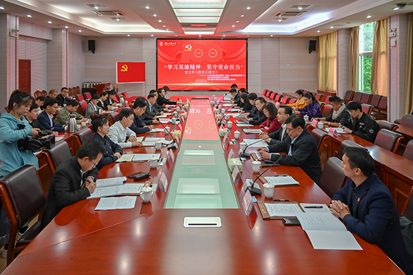 本网讯 4月26日下午,我校音舞学院教工党支部与中央民族歌舞团歌舞剧《老兵》剧组临时党支部、湖北省民宗委民族二处党支部在我校行政楼3号会议室联合开展“学习英雄精神 坚守使命担当”党史学习教育特色主题党日活动。国家民委专职委员孙学玉,中央民族歌舞团党委书记黄耀萍,中共省委统战部副部长、省民宗委党组书记、主任马萍,恩施州政协、党组书记、主席,湖北民族大学党委书记吴建清以普通党员身份参加活动。