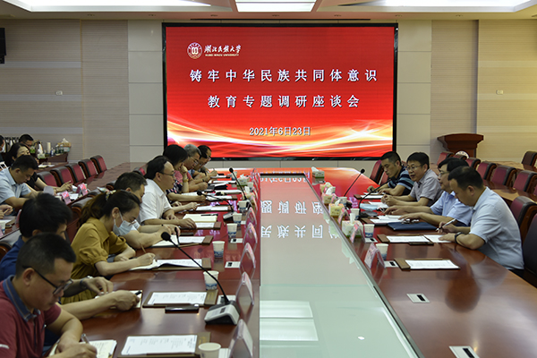 省民宗委民族二处处长谭兵介绍了此次调研的目的,充分肯定了我校开展铸牢中华民族共同体意识教育的做法。调研组一行与学校相关学院和职能部门负责人就如何开展铸牢中华民族共同体意识教育进行了深入交流和探讨。(责任编辑 廖希为)