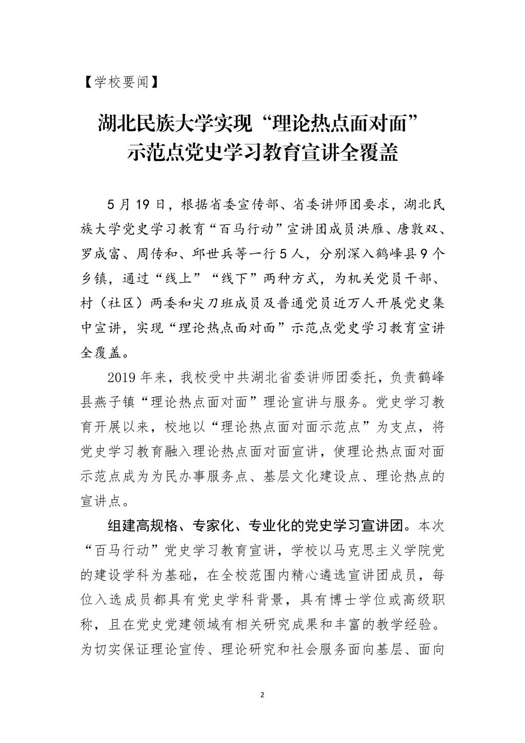 专题专栏 聚焦二十大 建功新时代 本科教育教学审核评估 党纪学习教育 【党史学习教育·学校动态】湖北民族大学党史学习教育简报(第四期) 作者: 2021-06-01 17:02:02 编辑:谭婷婷 来源: 点击量: 【字体: 大 中 小】 打印 【打印本页】 【我要纠错】 【关闭窗口】 上一篇: 【党史学习教育·理论学习】党领导下的科学家 下一篇: 【党史学习教育·理论学习】习近平:我们党的百年奋斗史就是为人民谋幸福的历史