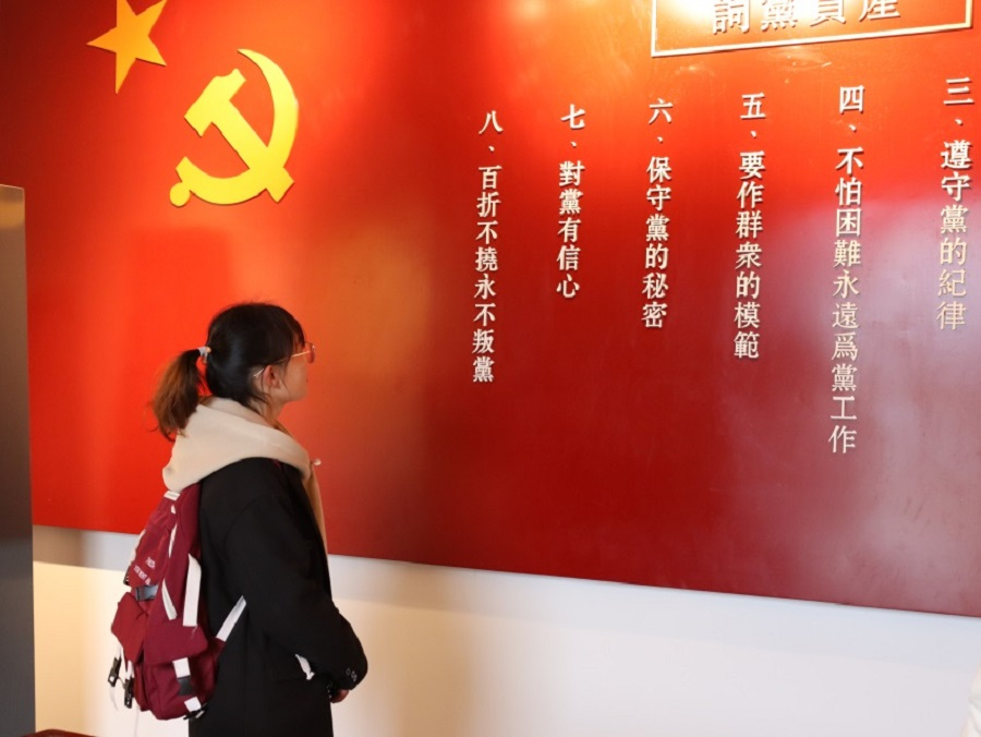 今年2月23日,外国语学院第三期“青马班”学员前往恩施市党员政治生活馆参加以“夺取新时代中国特色社会主义新胜利的政治宣言和行动纲领”为主题的宣讲会。“保守党的秘密,对党有信心,百折不挠永不叛党。”听完宣传会后,“青马班”学员徐飞旭驻足在恩施党员政治生活馆的文化墙旁,注视着“党员誓言”。习近平总书记在纪念共青团100周年大会上寄予广大青年,要自觉听从党和人民的召唤,积极向党组织靠拢,以成长为一名合格的共产党员为目标、为光荣。徐飞旭就是一名紧紧向组织靠拢的团员青年。外国语学院第三期“青马班”学员有73名,他们用实际行动紧贴党组织的心房,紧跟党组织的步伐。