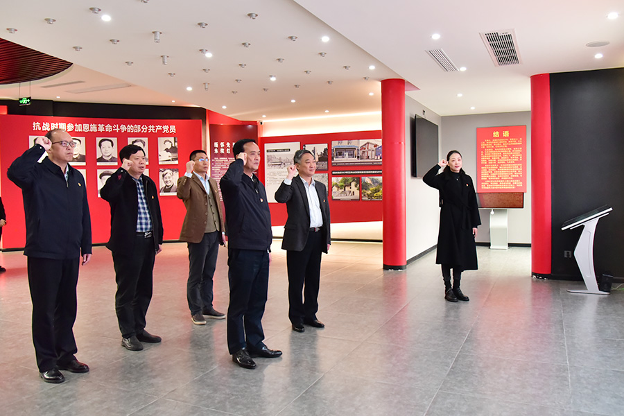 “我志愿加入中国共产党,拥护党的纲领,遵守党的章程……”在参观现场,全体人员高举右拳,面对鲜红的党旗,庄严宣誓,重温入党誓词,再次接受思想淬炼和精神洗礼。