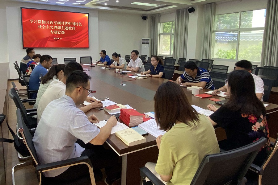 6月15日,学校党委副书记邓磊在学工处二楼会议室讲授主题教育专题党课,学工党支部全体党员参加学习,党支部书记方云霞主持党课。