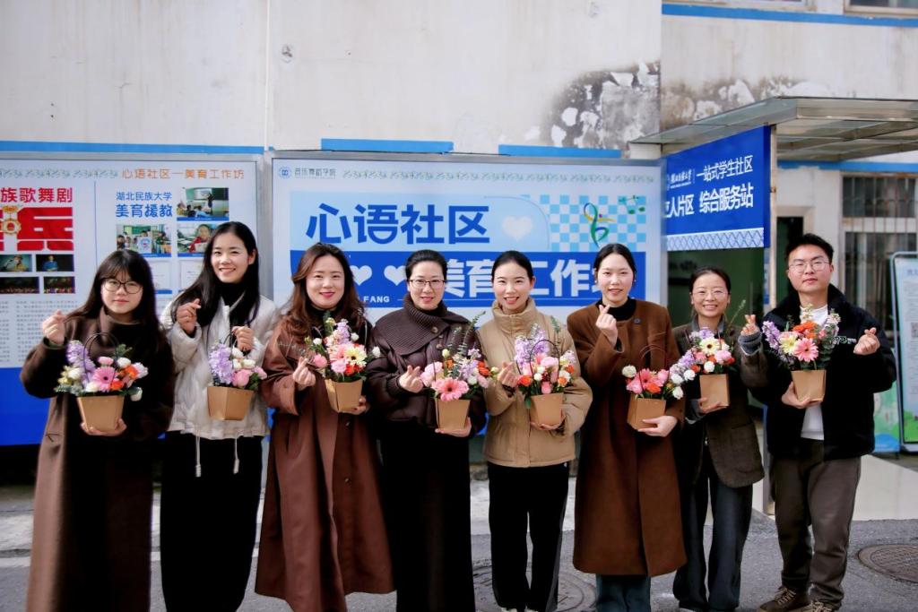 春风有信,花开有期。为庆祝第115个“三八”国际劳动妇女节,传递对女性教育工作者的关怀与祝福,3月7日,湖北民族大学音乐舞蹈学院“向美而行”辅导员工作室在心语社区组织开展了“温雅藏慧心·她力绽星辰”主题插花活动。活动邀请各学院学工系统代表共聚一堂,以花艺创作传递节日美好,以艺术之美凝聚奋进力量。