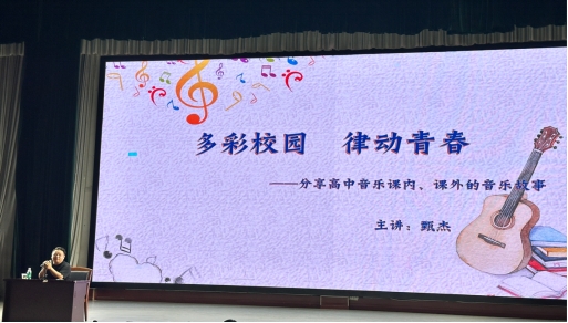 甄老师凭借其深厚的学术功底和丰富的教学经验,深入浅出地讲解了关于高中音乐课堂的教学方式,就“律动青春、无合唱不青春、无乐队不青春、无创作不青春”四个话题展开演讲,积极开拓学生的音乐教学思路,激发大家对音乐教学的强烈渴望。