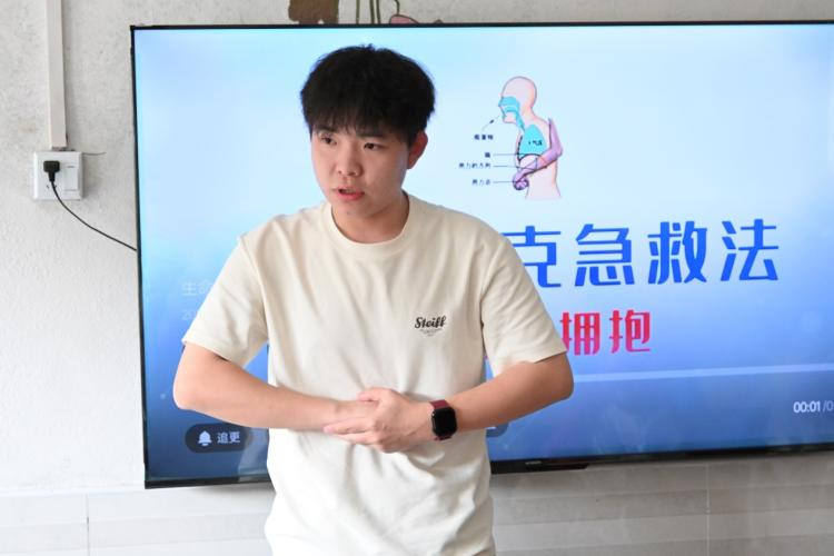 活动伊始,团队成员艾可涵以“小糖果卡喉咙怎么办”的趣味提问切入主题,用通俗易懂的语言为孩子们讲解海姆立克急救法的作用,生动的讲解方式让孩子们迅速提起兴趣。