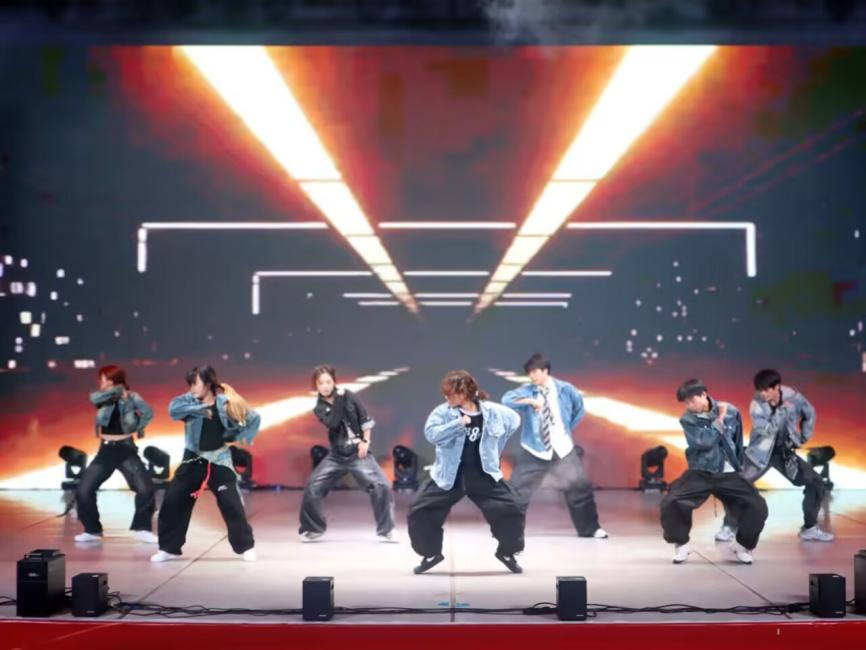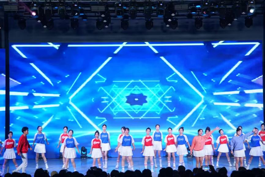 体育学院表演的《武韵新章》刚柔并济,一招一式尽显中华武术的深厚底蕴与时代活力。舞蹈《奔跑吧》融合街舞的劲爆与现代舞的柔美,力量与优雅在舞台上交替绽放。动感节拍中,舞者们以利落的肢体动作释放激情活力;旋律一转,流畅的旋转与舒展的舞姿又将观众带入唯美的艺术氛围。灯光随节奏变幻,热力与诗意在队形变换中完美交融,赢得现场阵阵掌声。