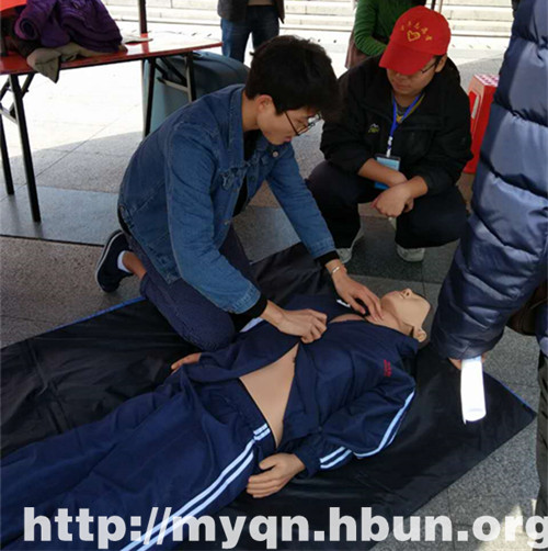 本网讯(记者 郑静静 杨青/文 郑静静/图)为积极推广应急救护知识,纪念“爱在双休日”志愿活动十周年,3月11日,我校医学院青年志愿者协会在大学生广场开展以“爱在双休日爱在双休,助残扶弱阳光满人间;志愿服务,应急救护知识放心间 ”为主题的志愿活动。青年志愿者协会45名志愿者参加活动。
