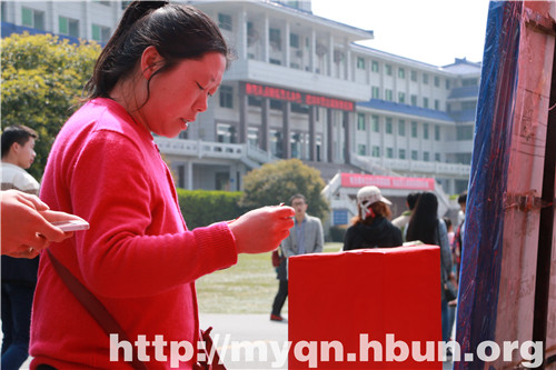 背着双肩包、身材不太高大的男生,在捐赠帐篷前停下,取下双肩包,拿出钱和一个小纸条,把钱放进募捐箱,“可以帮我把这个纸条转交给她们吗?谢谢了!”扭头转身离开,涌入湖北民族学院学生人潮之中。在场工作的志愿者叫他,让他留下自己的姓名,他始终没有回头。身着红色上衣的中年妇女看到此次活动,从钱包里拿着100元投进募捐箱,不愿留下姓名,也转身离开。很多学生选择“秒捐”的方式,成群结队的学生跑着来到募捐点,直接把钱塞进募捐箱,迅速跑着离开。