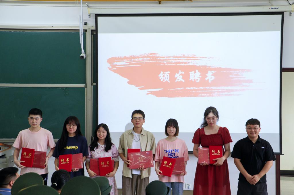 会议伊始,雷鹏宣读各学生组织新一届任职名单,各位老师为其颁发聘书并合影留念。校团委各组织学生干部代表发言,他们回忆在过去一年担任学生干部的经历,对老师们耐心指导表示感谢,希望下一届学生干部能够勇担重任,砥砺前行。