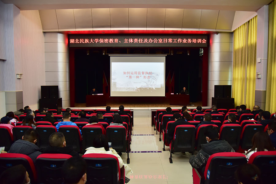 培训会分三个阶段进行。第一阶段开展保密教育培训,与会人员观看了两部高校保密宣传片,唐敦双同志通报了违反保密规定相关案例,强调了保密工作要求;第二阶段开展主体责任业务培训,纪委副书记曾祥华讲解了如何运用监督执纪“第一种形态”,主体责任办副主任罗巧玲讲解了学校落实全面从严治党主体责任的具体举措;第三阶段开展办公室日常工作培训,党办校办副主任严森、李奇峰分别讲解了学校办文、办会、办事有关要求以及疫情防控政策。