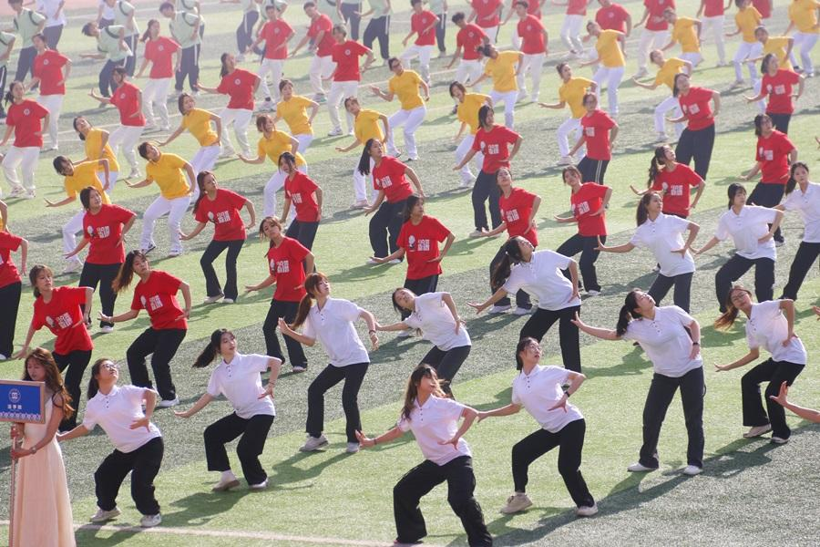 开幕式后,首先进行民族健身操表演。各学院部的民族健身操方阵身着各色服装,健步入场进行表演。他们动作整齐划一、协调一致,在活力四射的舞步中呈现异彩纷呈的民族文化特色和青春奋进力量,展示了民大学子的进取姿态和昂扬风貌,生动体现了少数民族传统体育文化精神和内涵。