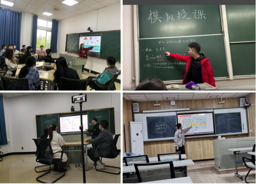 加强过程培养,强化教师技能训练。本专业实行“一训三习”教育实践教学体系,校内培养和校外实践有机结合,构建校内校外协同育人的实践育人模式。实践性课程实施混合式微格训练,把提高教学技能作为实践教学的发力点。除日常教学外,通过师范生技能比赛、走进中学、名师观摩课等紧密关联师范专业项目的实施进一步深化实践教学。